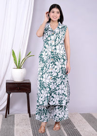 Cotton Floral Print Co-ord Set – Elegant Two-Piece Set for Women (Top & Bottom)